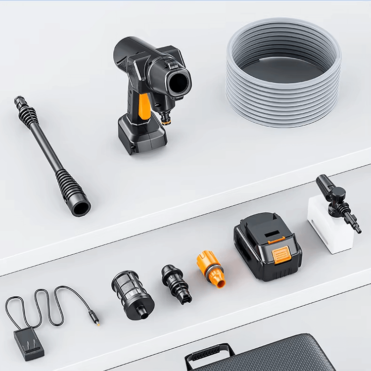 Wholesale Wireless Car Wash Machine Portable High Power High Voltage Lithium Electric Car Wash Water Spray GunProduct Details:Comes with a car wash luxury tool set (6 in 1 nozzle, car wash liquid, sponge, bucket, towel, gloves)10-cell battery, extension rod, charger, water inlet, filter, water pipe, etc.